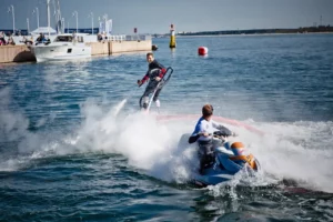 Franki was flying and performing sky-high stunts. Dolphin jumps and somersaults evoked storms of applause. This great show marked the beginning of the era of hydro-jet sports in Poland and is a symbolic day of starting our hydro-jet activity.